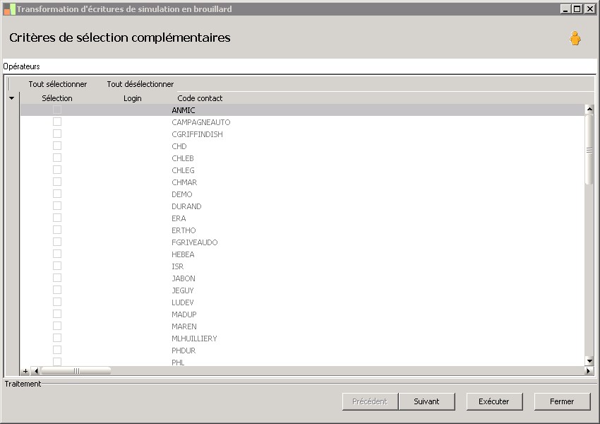 Permet de sélectionner les lots de simulation en fonction de l'opérateur de saisie. |