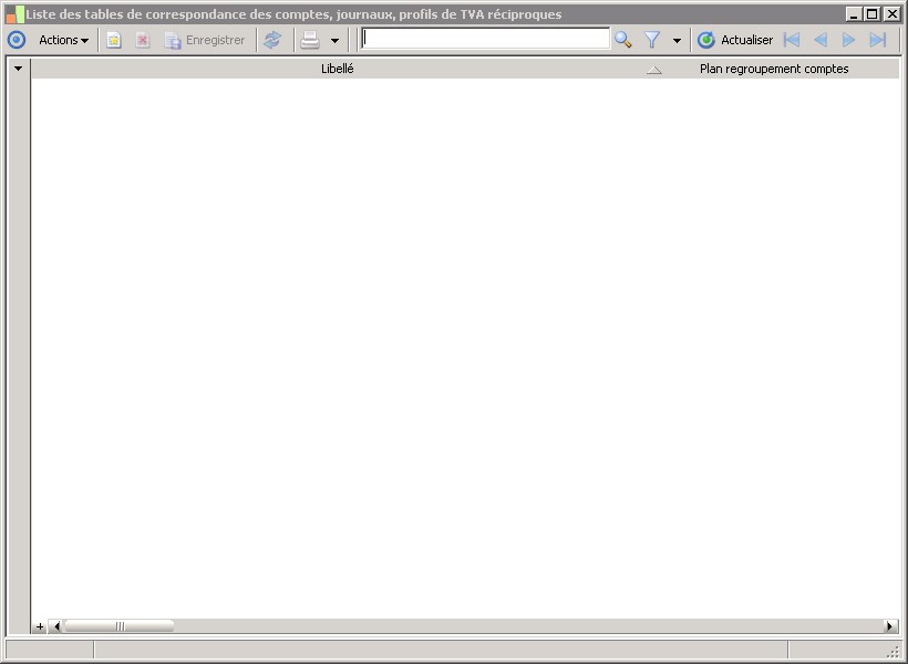 (Sage FRP 1000 Suite Financière) Menu Comptabilité Groupe > Générale > Gestion des pièces réciproques > Liste des tables de correspondance des comptes, journaux, profils de TVA réciproques