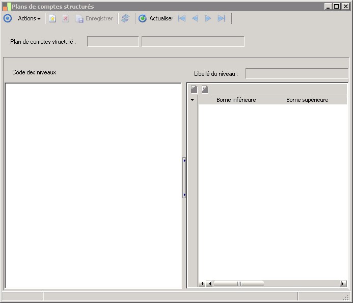 - Renseigner le code et le libellé du nouveau plan de compte dans la zone Plan de comptes structuré , située en haut de l'écran.