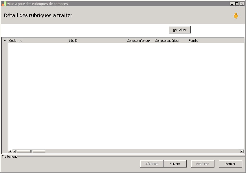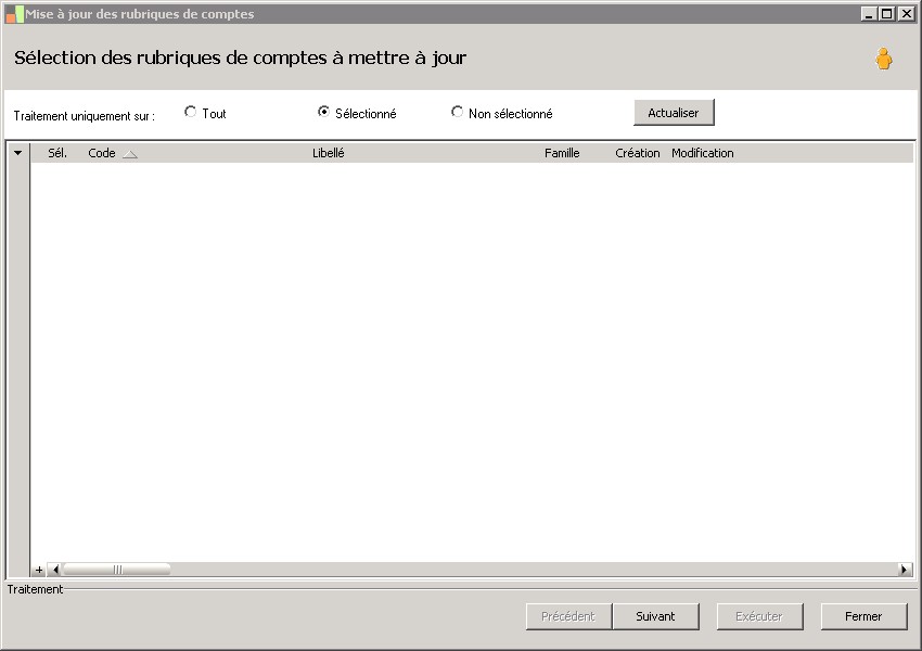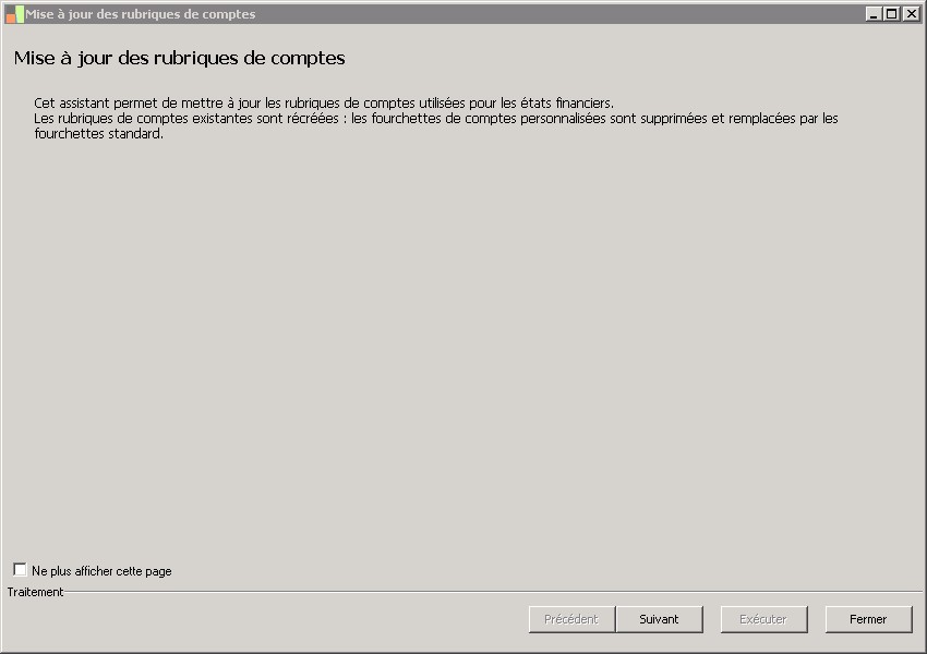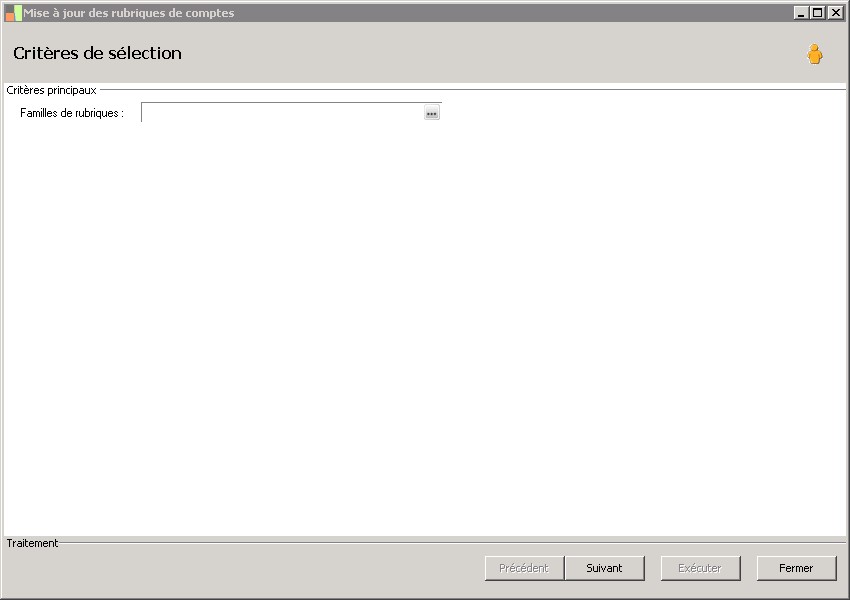 (Sage FRP 1000 Suite Financière) Menu Comptabilité > Initialisation > Rubriques > Mise à jour des rubriques de comptes