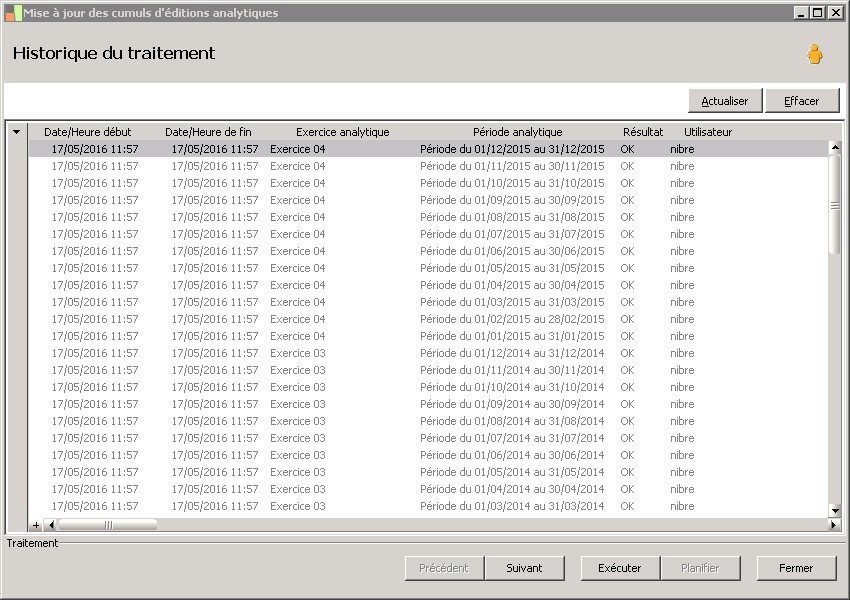 Cette zone mentionne l'exercice analytique sur lequel a été appliqué le traitement. |