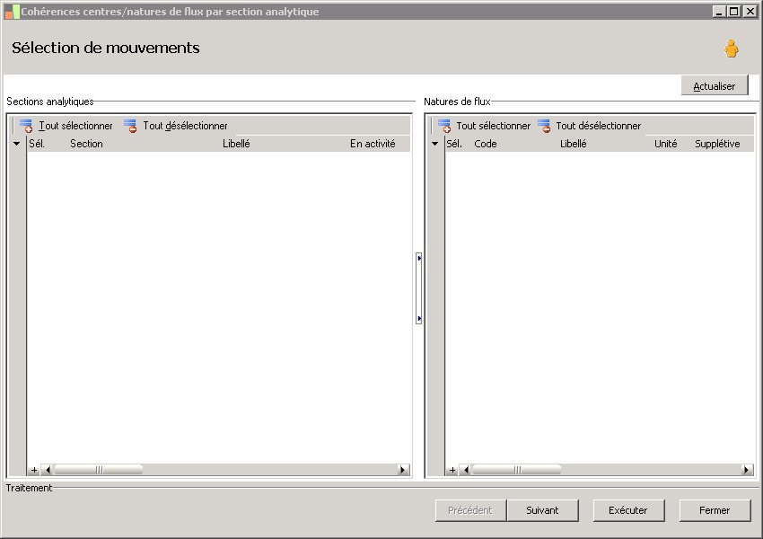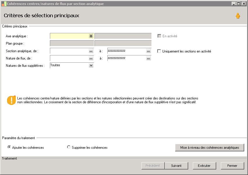 Permet de sélectionner le type de traitement à exécuter. Deux types de traitements sont possibles :- Ajouter les cohérencesou- Supprimer les cohérences |