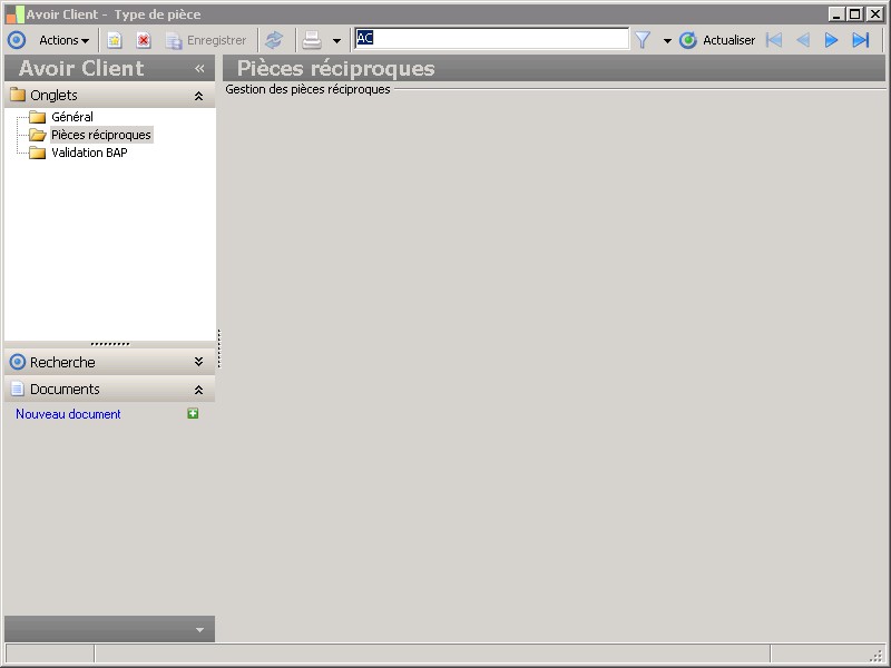(Sage FRP 1000 Suite Financière) Menu Comptabilité Groupe > Générale > Gestion des pièces réciproques > Type de pièce