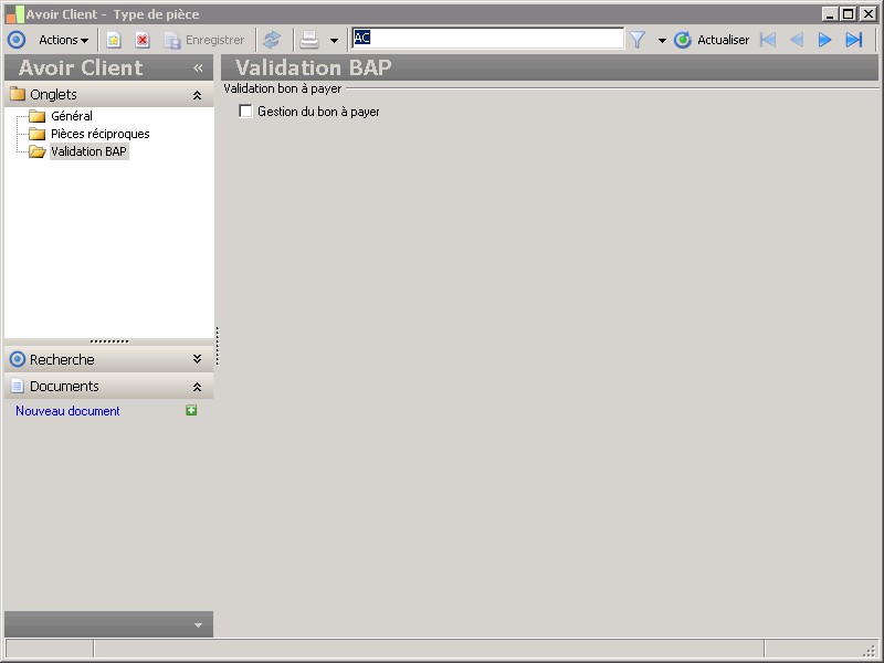 Lorsque cochée, cette information indique qu'une validation de la pièce est nécessaire pour permettre son règlement. Cette validation s'effectuera selon un circuit de défini par vos soins. La pièce ayant atteint la fin de son circuit devient bonne à payer et n'est plus modifiable.Il reste possbile d'invalider une pièce comptable sous certaines conditions : la pièce comptable ne doit notamment pas avoir fait l'objet d'un lettrage ou l'objet d'une déclaration de TVA. Cette invalidation a pour effet de renvoyer la pièce au début de son circuit de validation. |