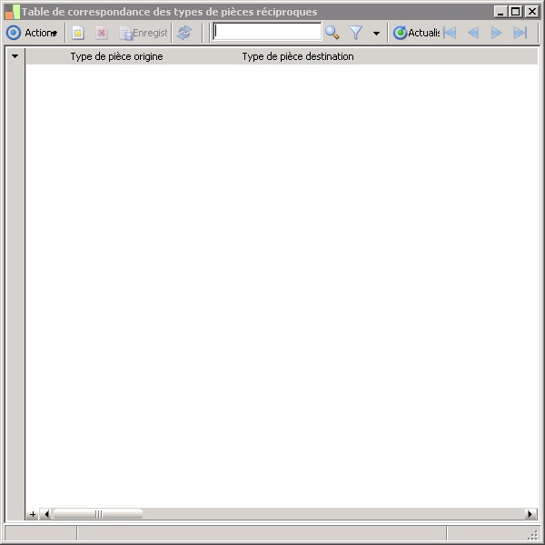 (Sage FRP 1000 Suite Financière) Menu Comptabilité Groupe > Générale > Gestion des pièces réciproques > Table de correspondance des types de pièces réciproques