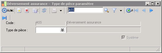 (Sage FRP 1000 Suite Financière) Menu Comptabilité > Paramètres > Comptabilité générale > Type de pièce paramètre