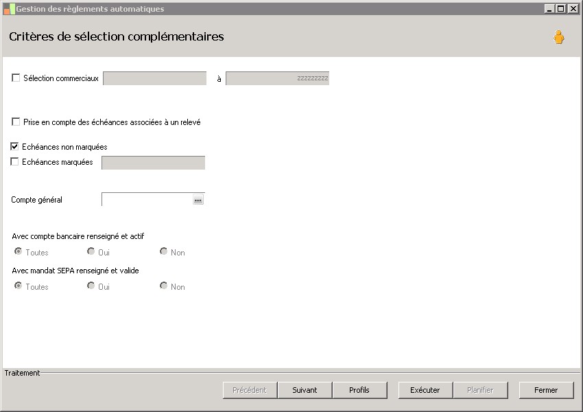 Indiquez si vous souhaitez oui ou non sélectionner les échéances en fonction des commerciaux. |