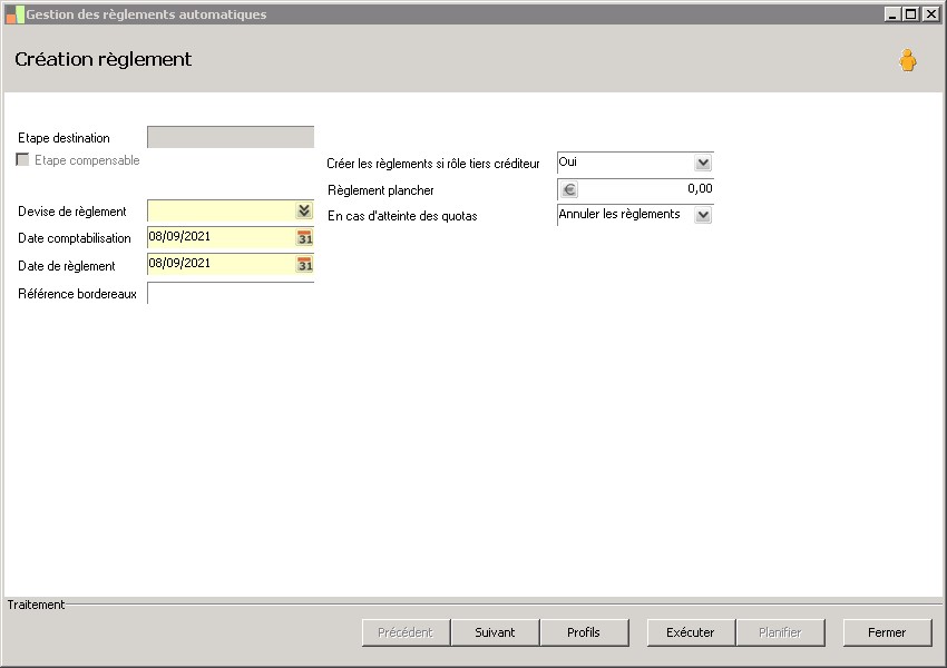 Il s'agit de la date de règlement du bordereau généré automatiquement par le traitement. |