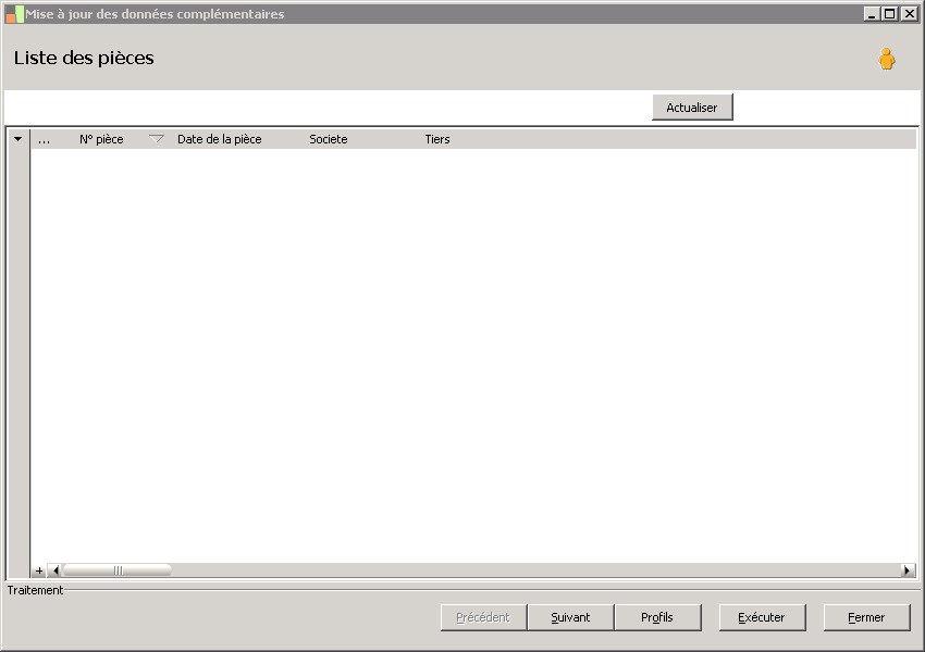 Mettre à jour les données complémentaires : permet de mettre à jour les accords d'échanges et d'ajouter les données complémentaires manquantes sur les factures. Ils faudra par la suite renseigner les valeurs de ces données complémentaires.