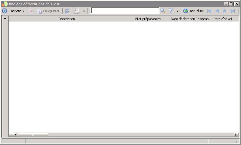 (Sage FRP 1000 Suite Financière) Menu Comptabilité > Générale > T.V.A. > Liste des déclarations de T.V.A.