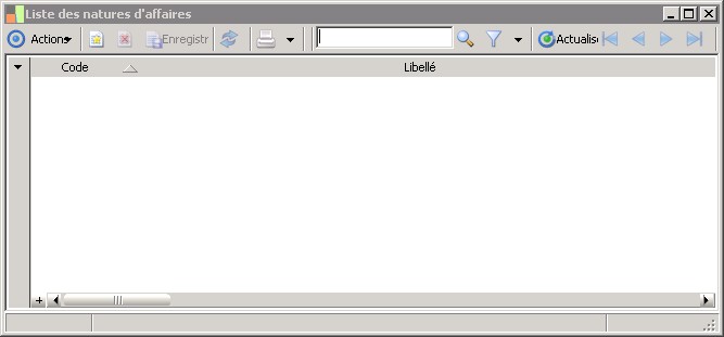 Cette fenêtre affiche la liste des natures d'affaires.