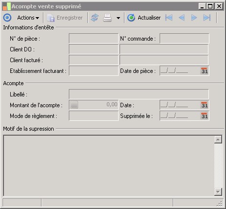 (Sage FRP 1000 Suite Financière) Menu Processus Opérationnels > Ventes > Facturation > Acompte vente supprimé