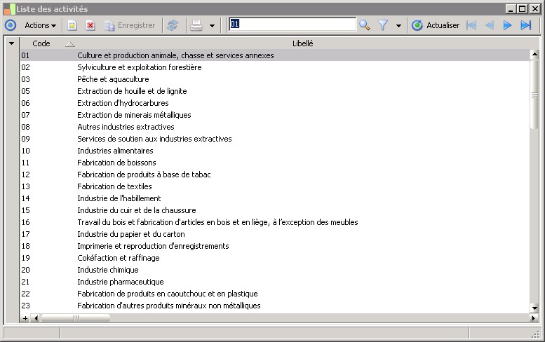Cette fenêtre affiche la liste des différentes activités des tiers avec lesquels vous êtes en relation. Elle permet de les créer, de les consulter, de les modifier et de les supprimer si nécessaire.