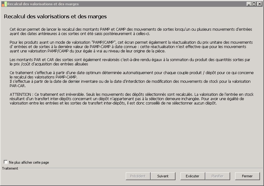 - La mise à jour des prix unitaires des entrées valorisées au PAMP / CAMP du jour (entrées diverses et transferts inter-dépôts).