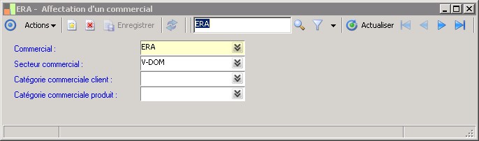 (Sage FRP 1000 Suite Financière) Menu Processus Opérationnels > Paramètres > Clients > Affectation d'un commercial