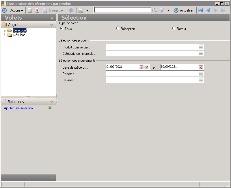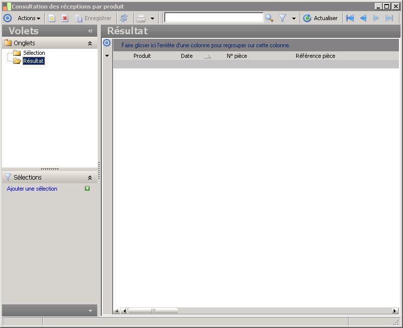 (Sage FRP 1000 Suite Financière) Menu Processus Opérationnels > Achats > Réception > Consultation des réceptions par produit