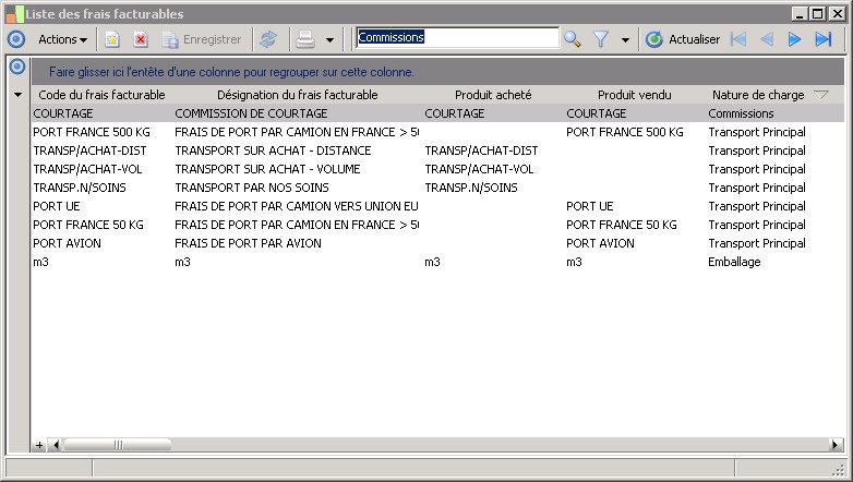 Les frais facturables peuvent être assimilés à des articles particuliers, leur gestion est d'ailleurs identique, qui serviraient à facturer des frais tels du port, des emballages, des consignations, etc.
