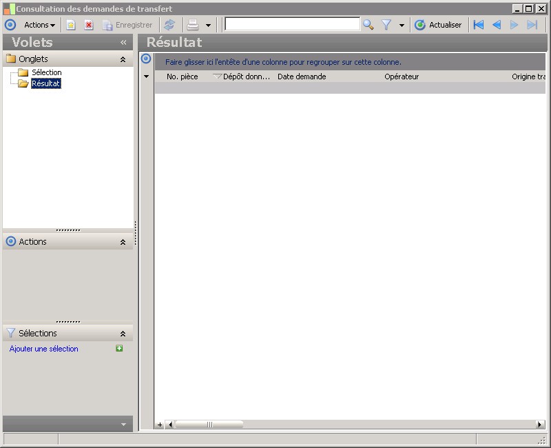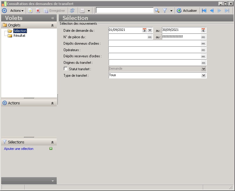 (Sage FRP 1000 Suite Financière) Menu Processus Opérationnels > Stocks > Transferts inter/intra-dépôt(s) > Consultation des demandes de transfert