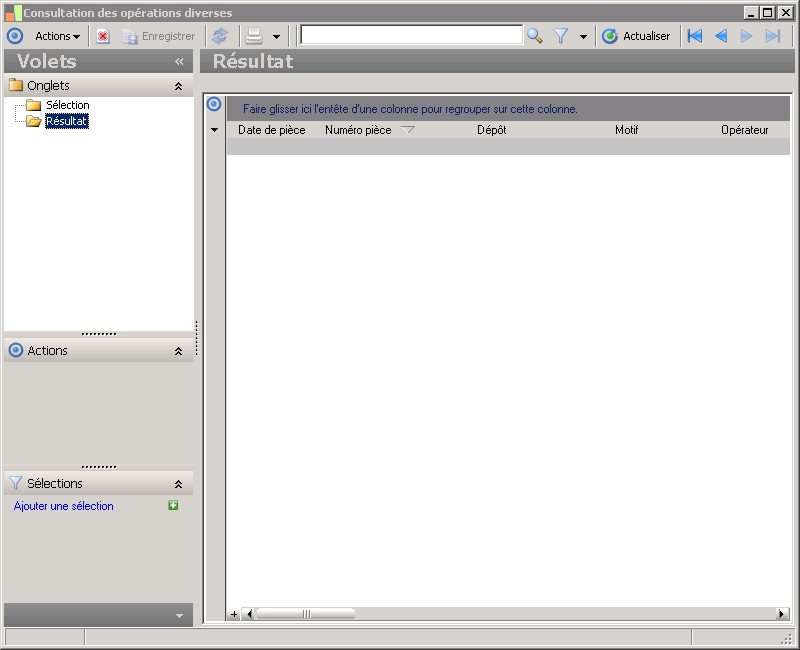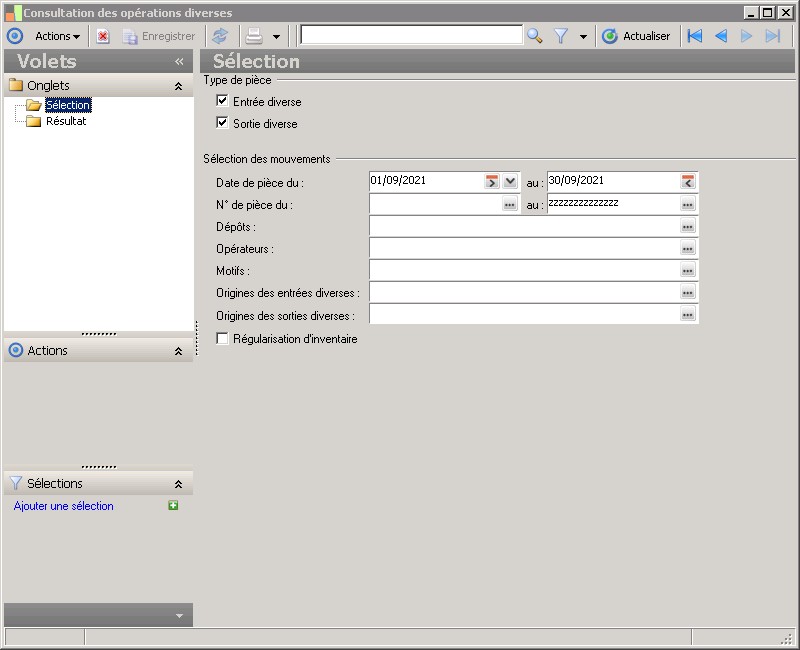 (Sage FRP 1000 Suite Financière) Menu Processus Opérationnels > Stocks > Opérations diverses > Consultation des opérations diverses