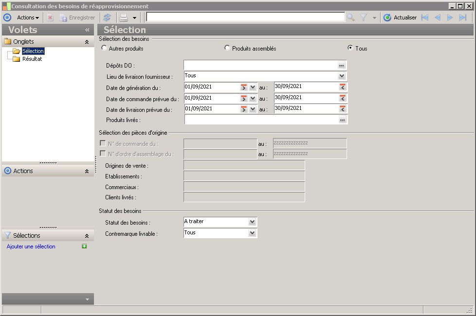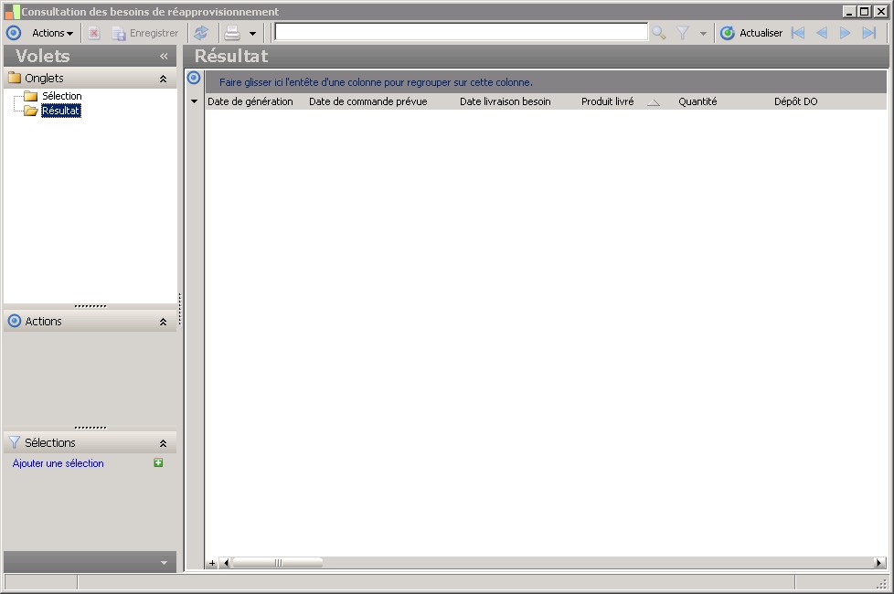 Ce dossieraffiche les besoinstrouvés en fonction des critères de sélection enregistrés dans le volet Sélection et après un clic sur le bouton Actualiser la liste .