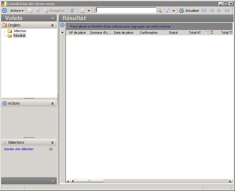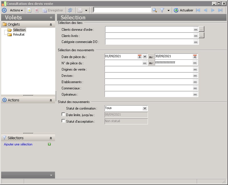 (Sage FRP 1000 Suite Financière) Menu Processus Opérationnels > Ventes > Devis > Consultation des devis vente