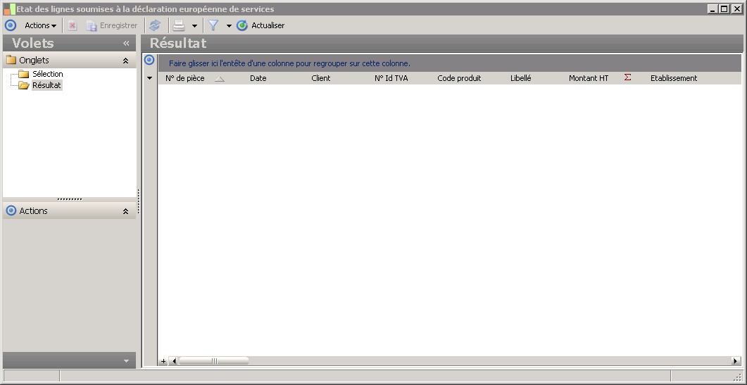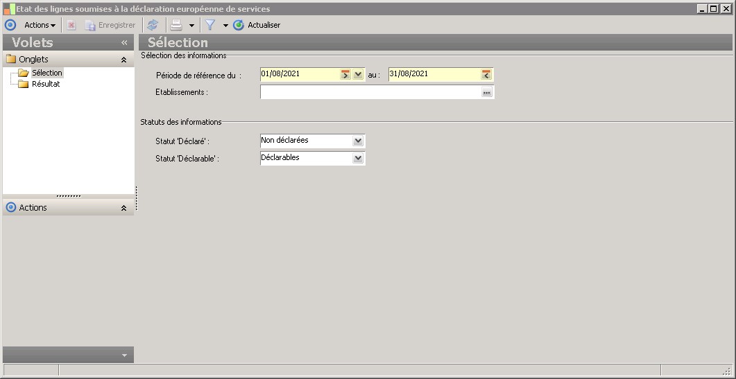 (Sage FRP 1000 Suite Financière) Menu Processus Opérationnels > Ventes > Déclaration européenne de services > Etat des lignes soumises à la déclaration européenne de services