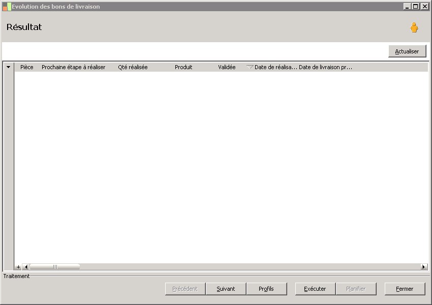 Résultat : Liste des bons de préparation ou de livraison ayant évolué