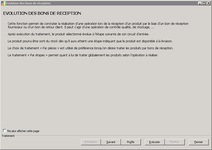 Cet assistant permet de faire évoluer les étapes de réception d'un ou plusieurs produits sélectionnés soit :