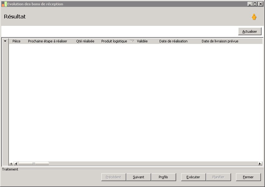 Résultat : Liste des bons de réception ou produits logistiques ayant évolué