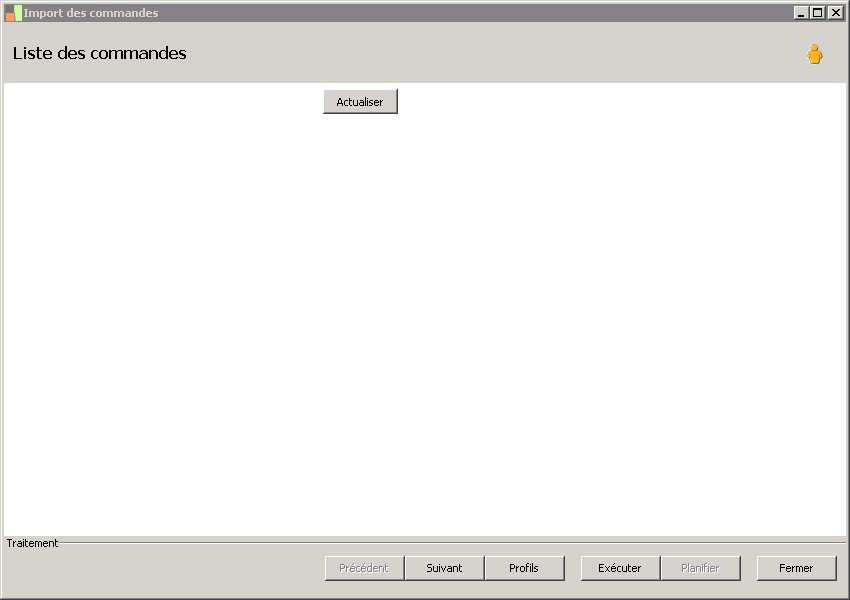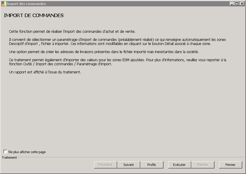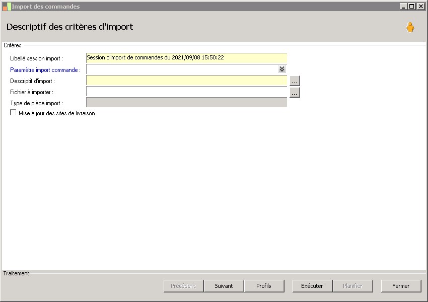 (Sage FRP 1000 Suite Financière) Menu Processus Opérationnels > Initialisation > Import de pièces commerciales > Import des commandes