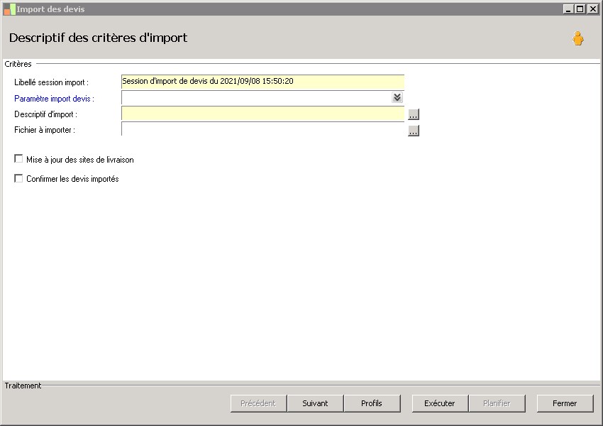 (Sage FRP 1000 Suite Financière) Menu Processus Opérationnels > Initialisation > Import de pièces commerciales > Import des devis