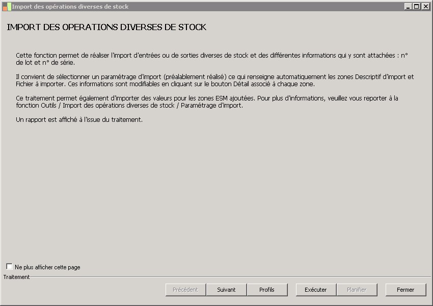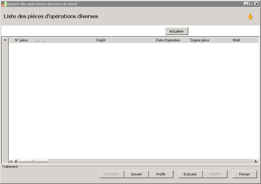 (Sage FRP 1000 Suite Financière) Menu Processus Opérationnels > Initialisation > Import de pièces de stock > Import des opérations diverses de stock