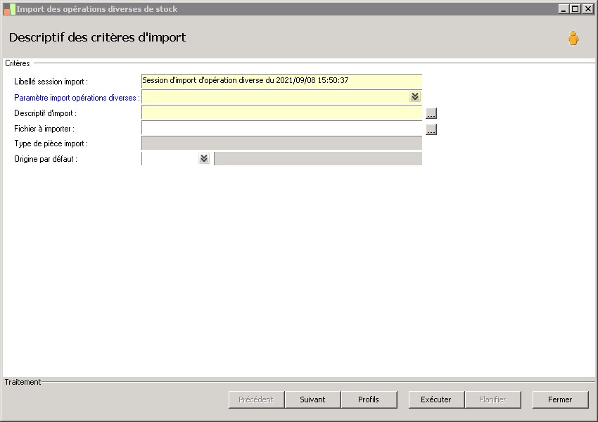 Paramètre import opérations diverses : |