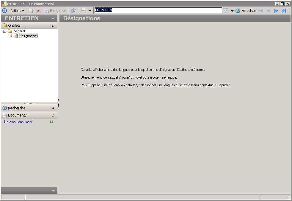 Le code d'un kit ne doit pas comporter de caractère « joker » tel %, ? ou _. Cette restriction s'applique à toutes les fonctions dont les éléments sont repérés par un code. |