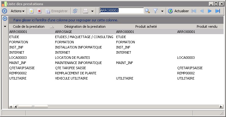 Cette fenêtre affiche la liste des prestations. Elle mentionne pour chaque prestation :