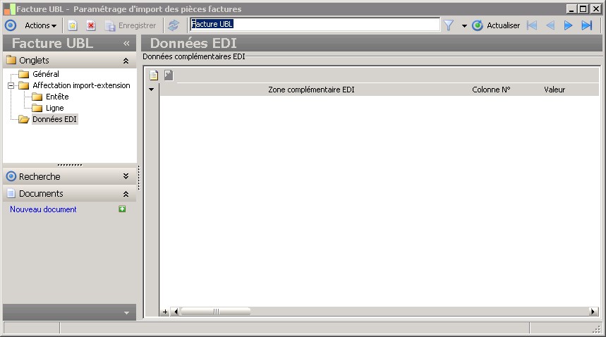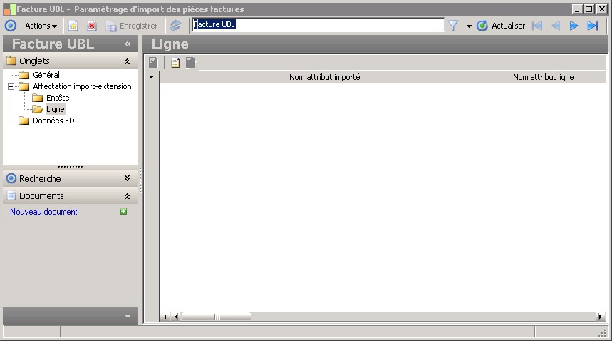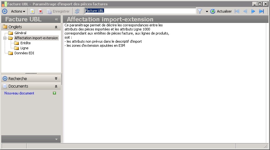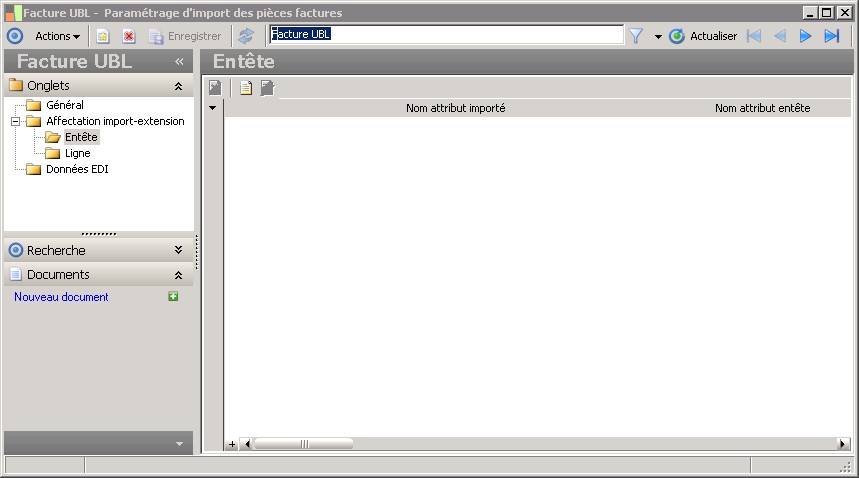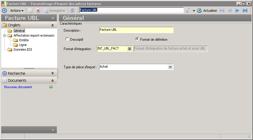 (Sage FRP 1000 Suite Financière) Menu Processus Opérationnels > Initialisation > Import de pièces commerciales > Paramétrage d'import des pièces factures