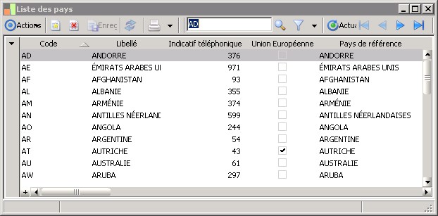 Toutes les fonctions qui permettent l'enregistrement des pays utilisent les valeurs saisies ici. Ce sont notamment :