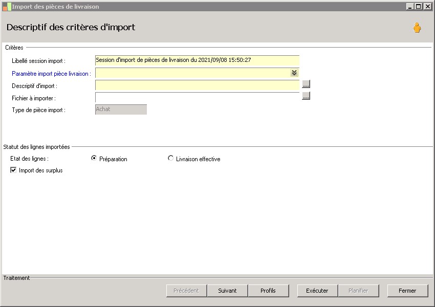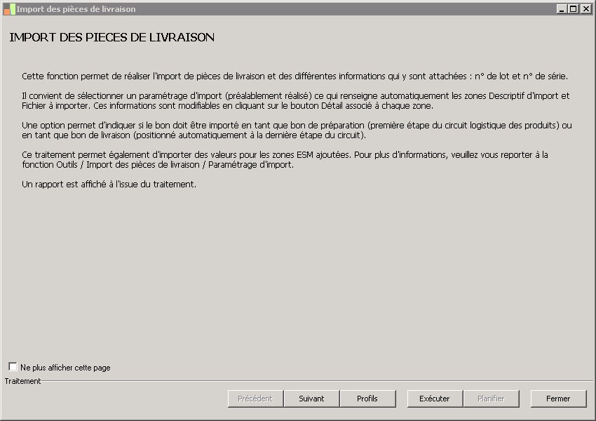 (Sage FRP 1000 Suite Financière) Menu Processus Opérationnels > Initialisation > Import de pièces commerciales > Import des pièces de livraison