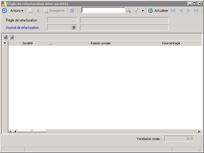 (Sage FRP 1000 Suite Financière) Menu Comptabilité > Paramètres > Comptabilité générale > Règle de refacturation inter-sociétés
