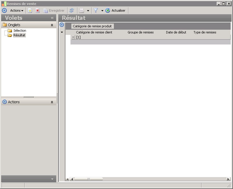 Cette zone permet de sélectionner la ou les catégories de remises client pour lesquelles vous souhaitez afficher les remises de vente.