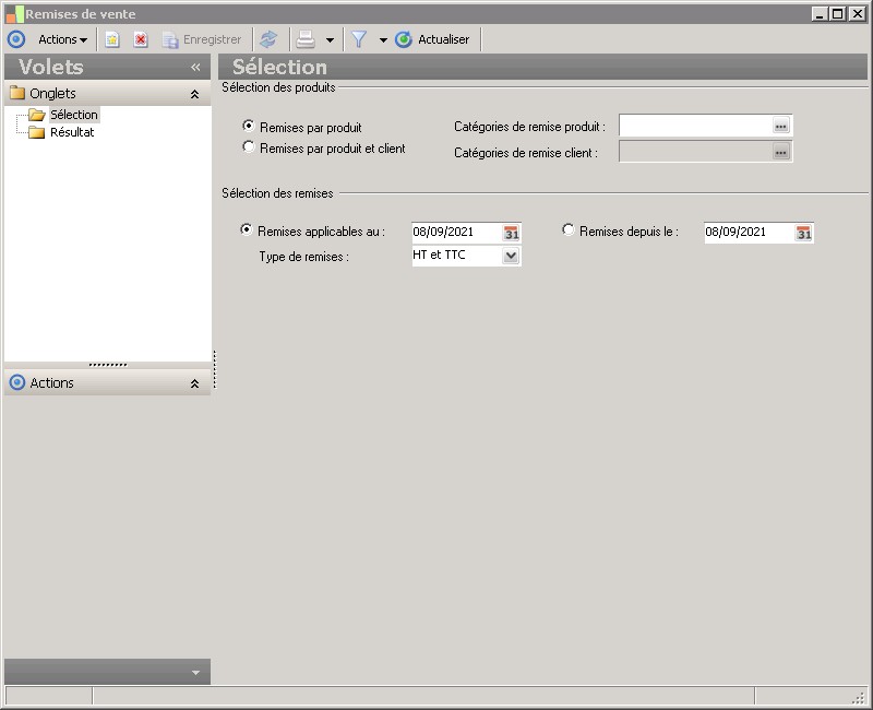 Cette zone permet de sélectionner la ou les catégories de remises produits pour lesquelles vous souhaitez afficher les remises de vente.