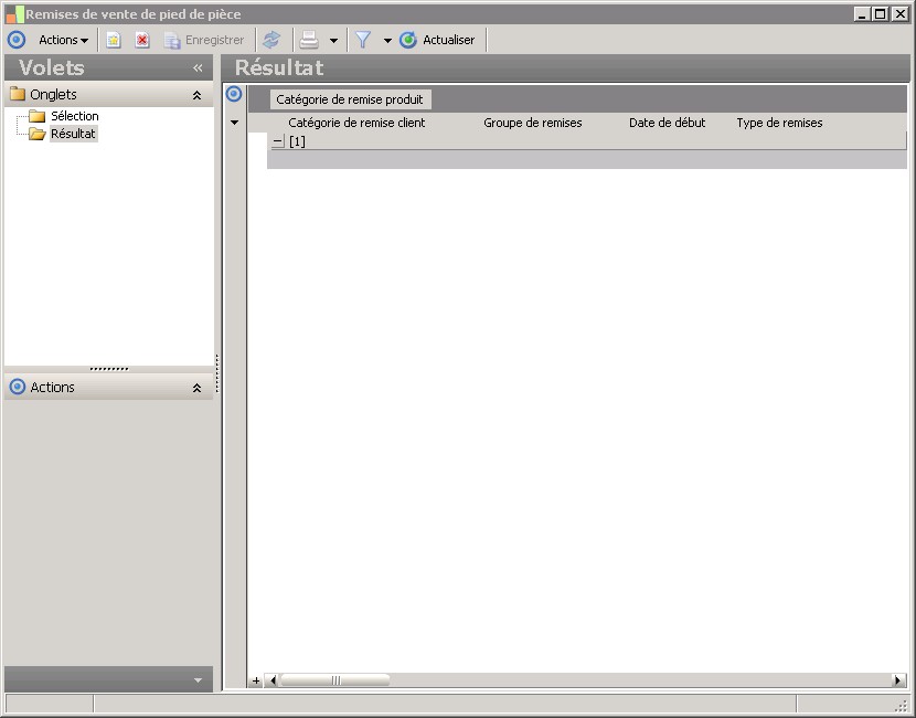Cette zone permet de sélectionner la ou les catégories de remises client pour lesquelles vous souhaitez afficher les remises de vente.