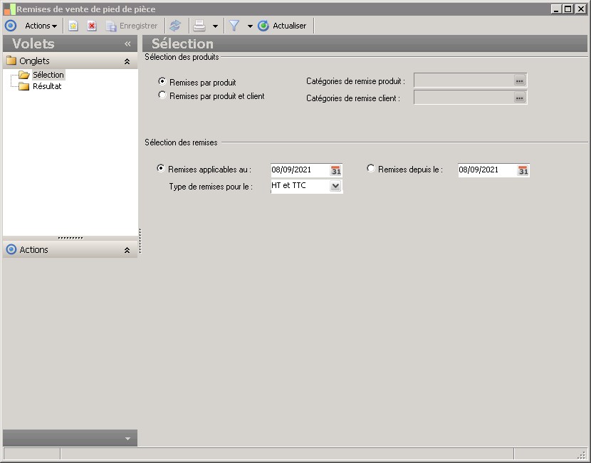 Cette zone permet de sélectionner la ou les catégories de remises produits pour lesquelles vous souhaitez afficher les remises de vente.