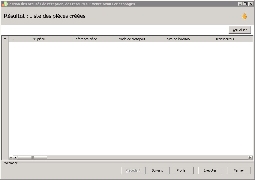 Actualiser complète la liste des lignes de retour ayant été générées avec les références de la pièce correspondante.