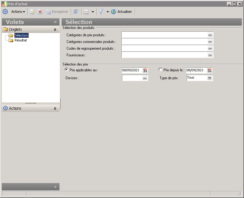 Actions permet, à partir d'un prix d'achat pour un fournisseur donné, d'enregistrer un prix équivalent, majoré ou minoré, dans une autre devise. Pour cela :