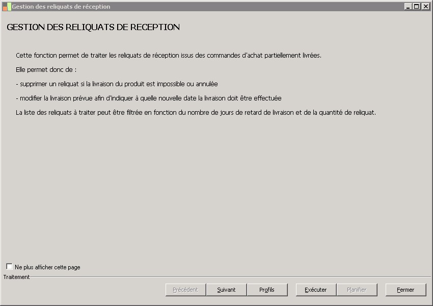 Achats / Réception / Gestion des reliquats de réception .