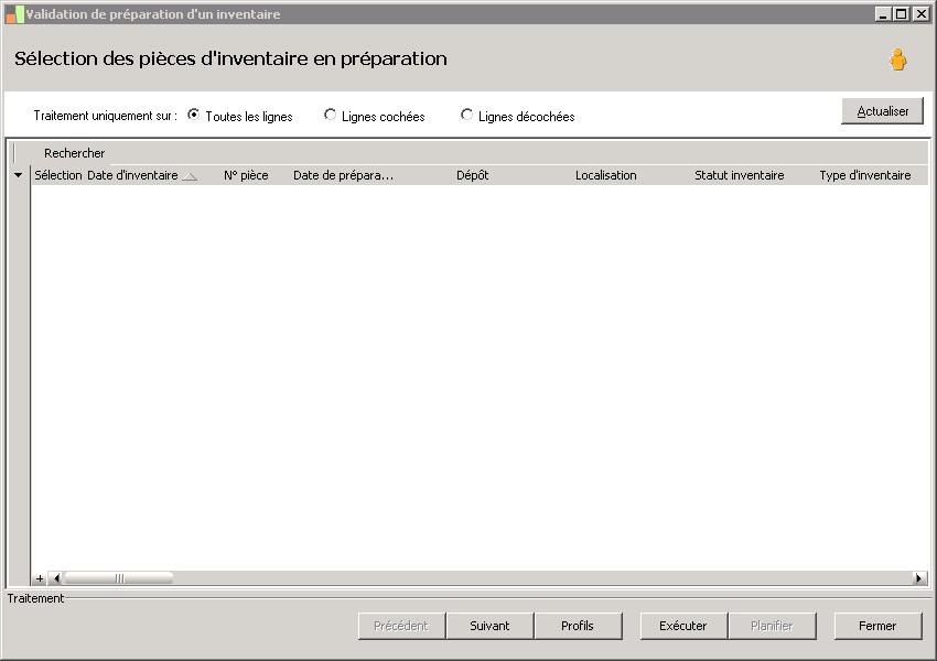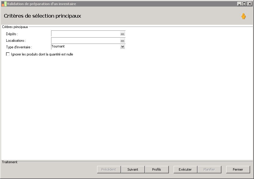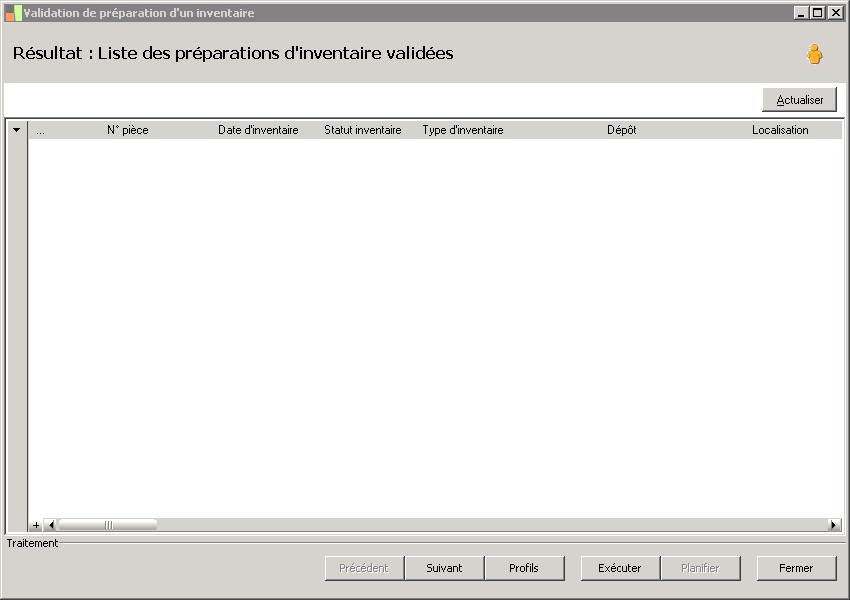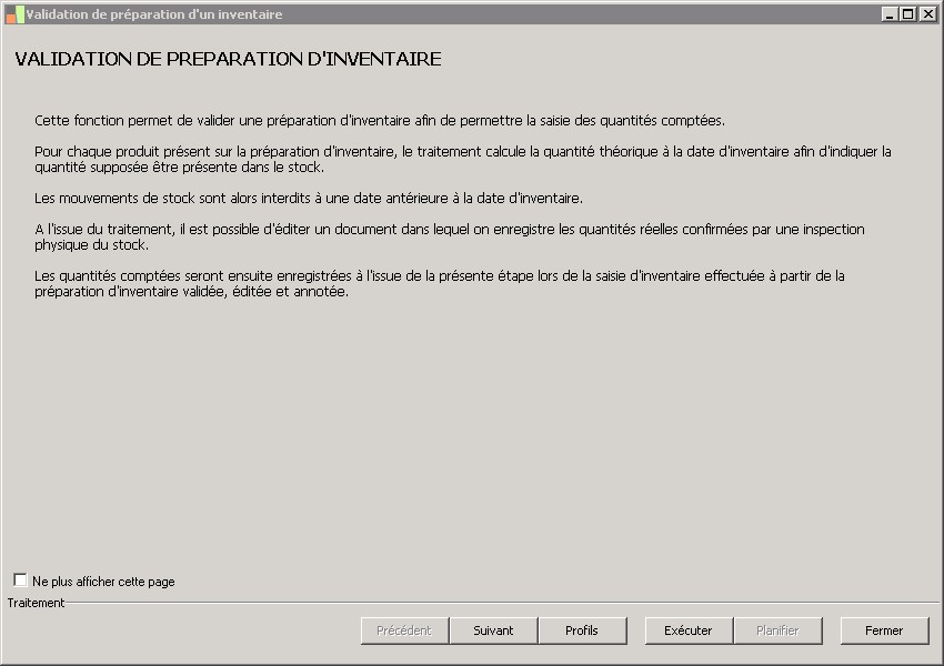 (Sage FRP 1000 Suite Financière) Menu Processus Opérationnels > Stocks > Inventaire > Validation de préparation d'un inventaire