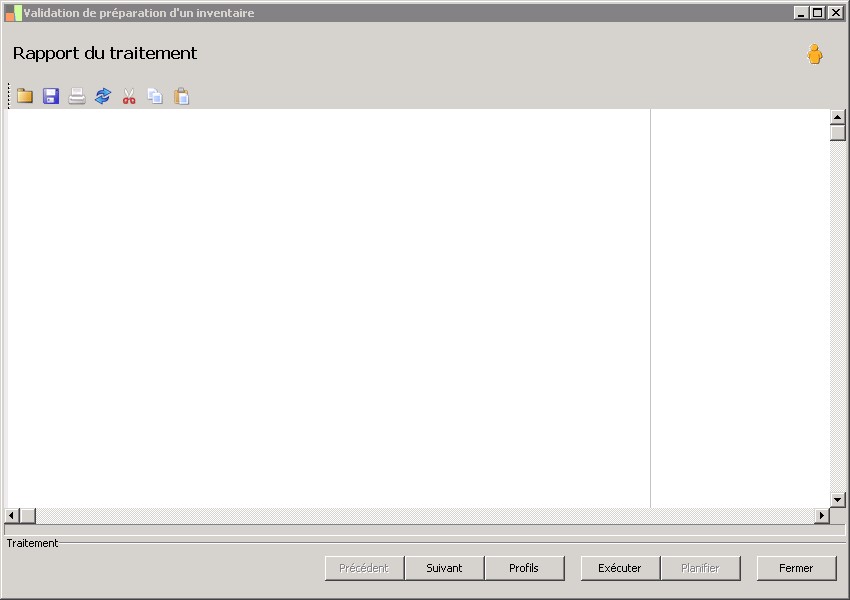 Cette zone indique le stade de réalisation de l'inventaire :- Préparation : l'inventaire a fait l'objet de la préparation d'inventaire (création de la pièce d'inventaire). - Saisie : l'inventaire est en cours de saisie.- Validé : la pièce d'inventaire a mis à jourle stockLorsqu'il existe un inventaire en cours de saisie sur un produit donné et un dépôt donné, il n'est pas possible de créer un inventaire sur le même produit et le même dépôt. L'inventaire doit êter validé pour qu'un inventaire sur le même produit/dépôt soit autorisé. |