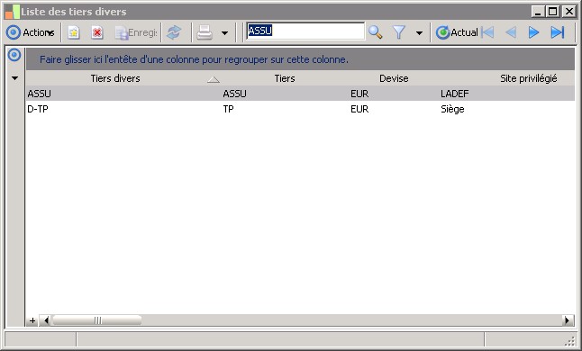 (Sage FRP 1000 Suite Financière) Menu Processus Opérationnels > Fichiers de base > Tiers divers > Liste des tiers divers