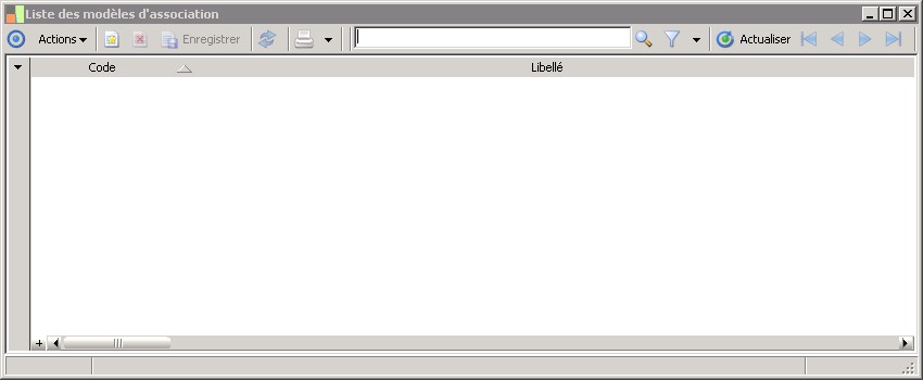 Cette fenêtre affiche la liste de tous les modèles d'association enregistrés dans l'application et permet leur modification ou la création de nouveaux éléments.